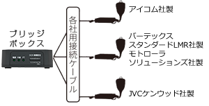 ブリッジボックスはデジタル簡易無線(DCR)を中心に、主要な無線機メーカーの無線機と接続できます※